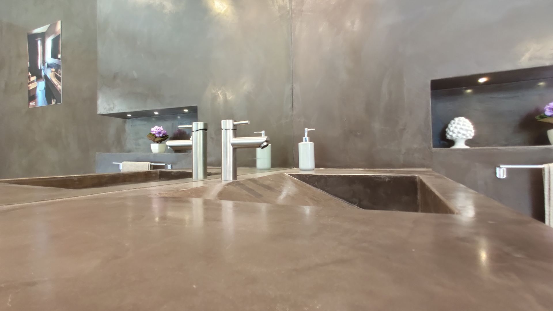 Benvenuti nella nostra galleria fotografica, dove vi presentiamo alcune delle nostre realizzazioni più sorprendenti, sia indoor che outdoor. Grazie alla nostra esperienza e alla passione per la resina, siamo in grado di trasformare gli spazi in vere e proprie opere d'arte, conferendo un tocco di eleganza e modernità. All'interno della nostra galleria, potrete ammirare pavimentazioni in resina dall'aspetto naturale e rustico, perfette per gli ambienti più accoglienti, così come soluzioni per gli interni dalle linee moderne e minimaliste. Inoltre, troverete immagini di piscine e terrazze, dove la resina si trasforma in un rivestimento esterno estremamente resistente e duraturo.